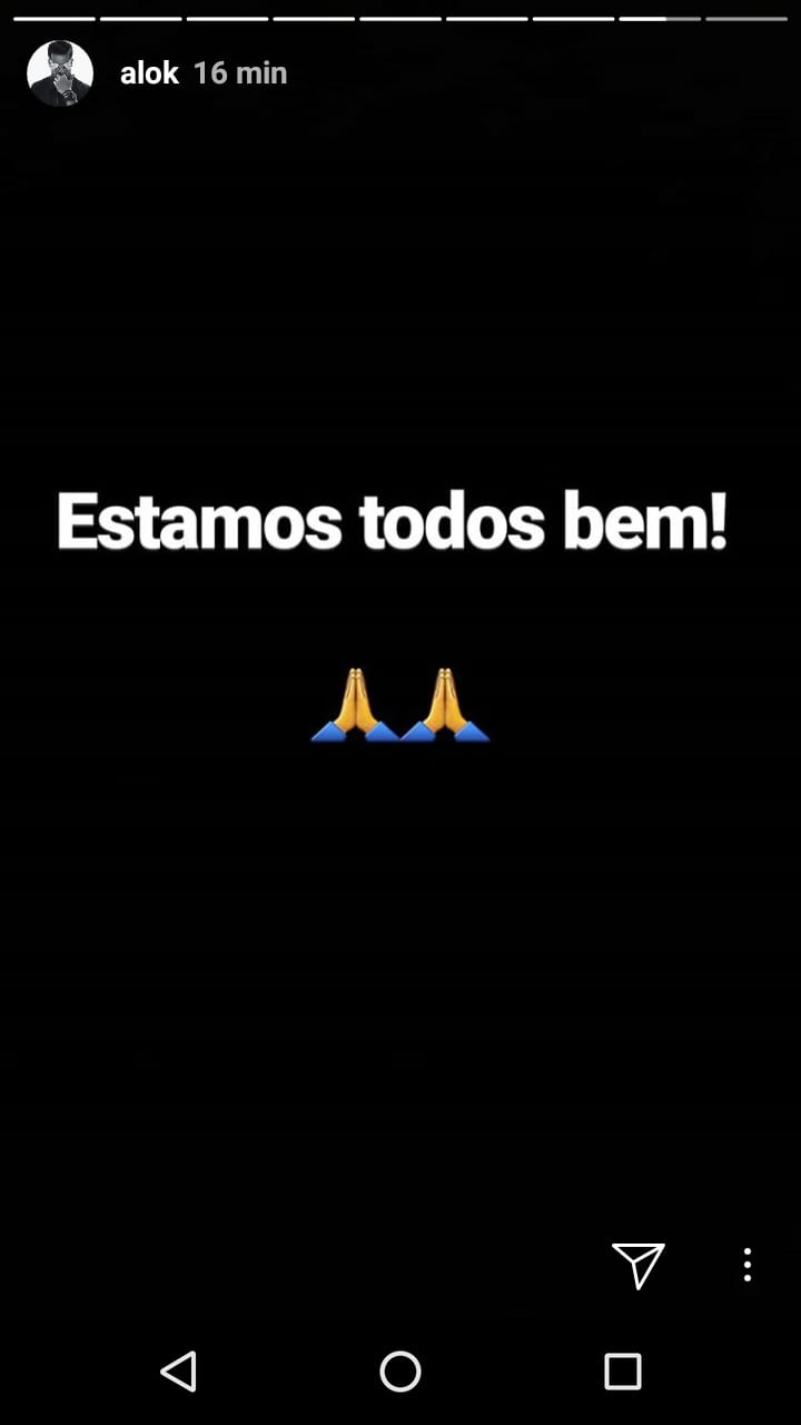 Através de seu perfil na rede social Instagram, Alok publicou vídeos, onde aparecia visivelmente abalado, mostrando cenas da aeronave fora da pista. Em determinado momento de um dos vídeos é possível escutar choro, possivelmente de algum dos passageiros abalado. Também é possível visualizar um sinal de fumaça perto da aeronave, com alguém ao fundo falando “tá pegando fogo, tá pegando fogo”. Por meio das publicações o DJ informou que todos passam bem.
