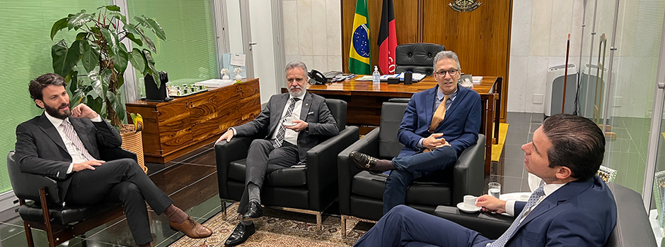 O governador Romeu Zema convidou, nesta quarta-feira (9/4), o presidente da Câmara dos Deputados, Hugo Motta, para ser o homenageado com o Grande Colar da Inconfidência de 2025, na solenidade que acontece no dia 21/4, em Ouro Preto. O convite ao chefe da Casa Legislativa foi feito durante encontro realizado em Brasília.