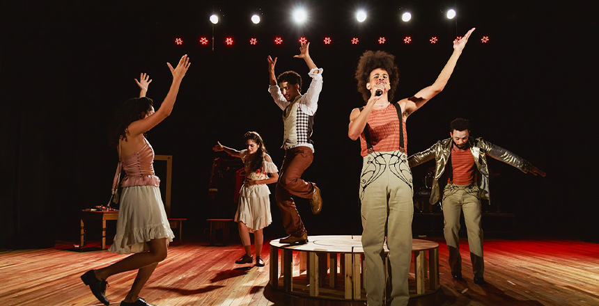 “Um Homem Célebre” enriquece a experiência teatral com a presença marcante de uma banda ao vivo, liderada por Jeann Cavallari (ator da peça e licenciando em Música pela UFJF). A trilha sonora original propõe uma releitura contemporânea da polca, gênero musical popular do século XIX, e aborda a complexa busca por originalidade, um tema central na jornada do protagonista.