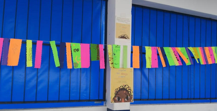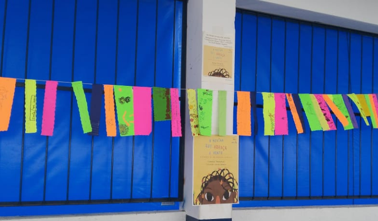 Durante a atividade, realizada na sala de leitura da escola, os alunos trocaram percepções em conversas com as turmas e se expressaram por meio de ilustrações que ficaram expostas no ambiente escolar.