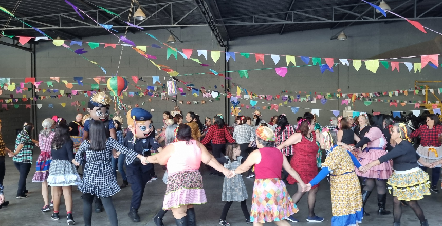 O tradicional arraiá contou com a presença dos mascotes da Guarda, GMs Gil e Lara, vestidos a caráter. O baile levou as participantes à prática de atividade física espontânea, queimando calorias e aquecendo o corpo, antes das comidas típicas.