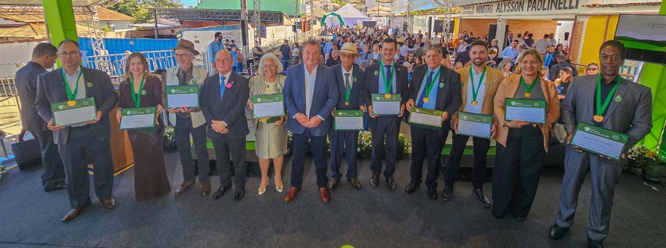 O Governo de Minas homenageou, neste domingo (29/6), com a entrega da Medalha de Honra Ministro Alysson Paolinelli, dez personalidades e instituições que prestaram relevantes serviços à agropecuária, ao setor produtivo e ao desenvolvimento sustentável.