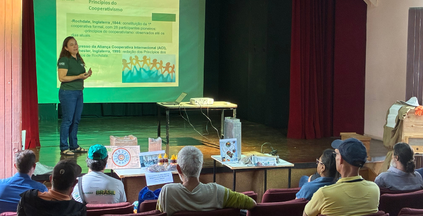 A extensionista da Emater-MG, Ana Helena Camilotto, explica a origem da iniciativa: “Surgiu uma demanda de um grupo para se organizar para venda direcionada à alimentação escolar e outro grupo envolvido com a criação de meliponas. Nosso objetivo é apoiar esses produtores, tanto na parte técnica quanto teórica, envolvendo o cooperativismo e a apicultura e a meliponicultura”.
