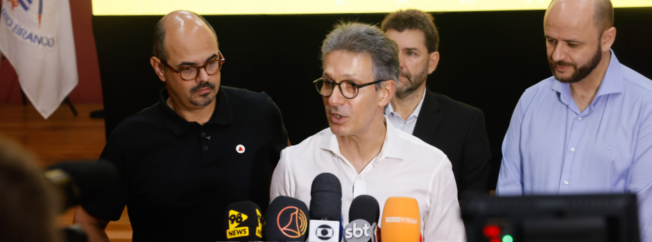 O governador Romeu Zema e o vice-governador Mateus Simões participaram, nesta terça-feira (3/2), do lançamento do Minha Escola MG, aplicativo que reúne as informações acadêmicas dos estudantes da rede estadual em um único ambiente digital.